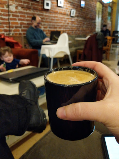 Lots of hipster types hanging around in front almost made me decide not to go in, but I am glad I did. My drink was awesome-- strong and flavorful. Barrista was super busy but also very friendly. Its nice they have a kid area, but I dont think I would hang out there with my kid.