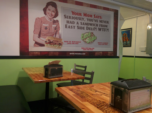Eastside is one of the best sandwiches in Portland. The specialty sandwiches are all really good, and the vegetarian menu is very impressive. Hotdogs are tasty and cheap alternatives, the pit bull is bomb. Happy Hour deals on draft beer are great too.