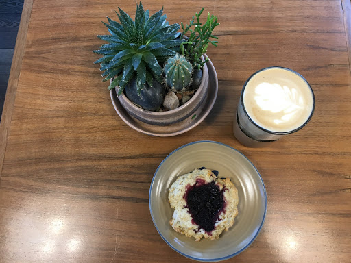 I got a maple orange latte here and it was so good! I dont know if this is an idea that they came up with on their own or if its been done elsewhere too, but it was my first time having one and it was delicious. It came out quickly and was beautifully presented. The staff was very friendly, and the clean, minimalist décor was surprisingly cozy. Great location too - within walking distance of several different restaurants if youd prefer to enjoy your coffee with something other than a pastry.