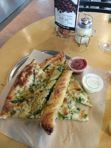 Really solid pizza. They do heat up slices so everything will be nice and warm but not necessarily fresh out of the oven so be sure to chose from the newest looking pizzas. Hot Lips brand sodas are also pretty good for the price.