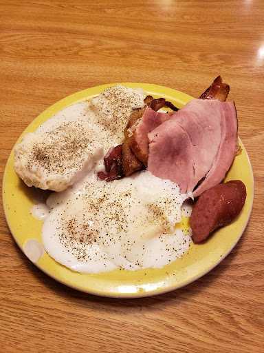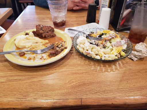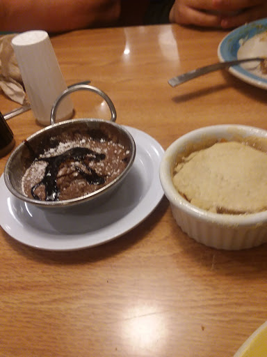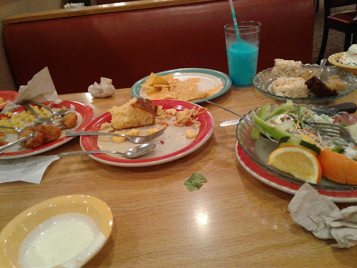 Tables here are usually clean, theres a good deal of space, and the food is plentiful and hot. My kids all like to eat here. The salad bar is usually very fresh-looking, and the desserts are very appetizing. I like to load up on roast beef or prime rib, horseradish, a nice big plate from the salad bar, and round it off with a sampling of the hot desserts (really enjoy the bread pudding with some vanilla ice cream on it). Its very reasonably priced for a dinner buffet (under $60, without the tip, for 3 adults and five kids between ages 9 and 2), and their family night helps the pocketbook as well. The servers are usually very diligent about removing empty plates and answering questions. All in all, good family eatery.