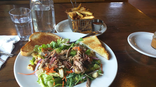Gave my son a chance to pick where hed like to celebrate his birthday while in Portland, and his friends recommended this joint. We went in for lunch, and heres what we found: My son ordered the root beer, which had a foreign object in it (I stuck with the tap water). It appeared to be organic, but it had no place in any beverage. Wonder how our server missed it sine it was very visibly bright in color. The corn bread was mediocre and barely warm, the beans were not even lukewarm and as such inedible. My half chicken was apparently a midget, still bleeding, and the skin was rubbery and tasted awful. I was afraid of getting ill from an undercooked bird, but was told it had been "smoked for hours." My son seemed to enjoy his meat platter with 2 takes of pulled pork and one of ribs, but the experience was anything but worth the hefty price. Hopefully we visited on an off day (a Saturday), but then again, an off day for a restaurant can lead to many off days for the patron. Not too cool.