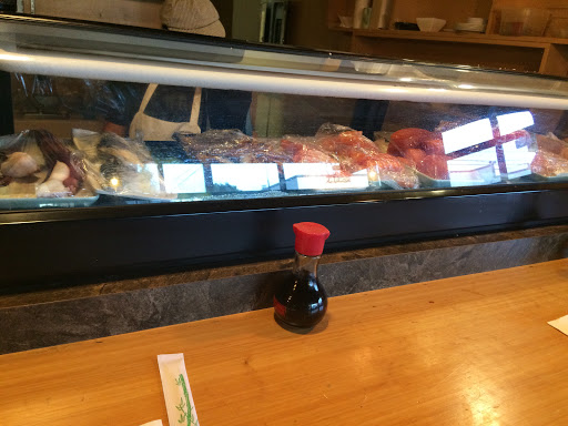 Good food, no wait for a table, food arrives quickly. Not big on atmosphere or customer service (not bad, just really bland, mediocre, boring) but good sushi and prices. No bells or whistles or anything fancy here. Last time I was there, the table we were seated at was super sticky (icky!) and I wasnt comfortable pointing it out to the waitress so I just sat at a gross table the whole time. Itd also be helpful if the soy sauces were labeled to differentiate between low-sodium and regular.