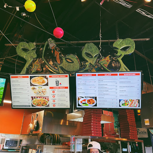Thought the pizza was okay, I wish it was freshly cooked as I ordered the pizza. I walked in with a friend and saw the pizza type we wanted and they heated it up and brought it out? How long was that sitting there? Like they do that at johns incredible pizza with the heat lamps. That threw me off a bit I was not very impressed. I thought the place was so bizarre covered in alien stuff. The waitress was so nice.