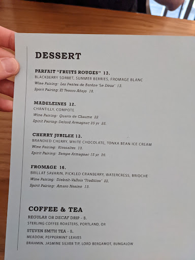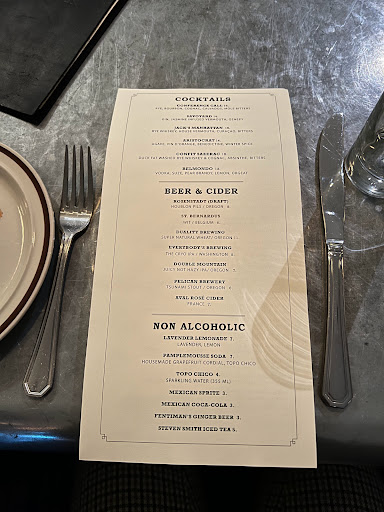 The service was excellent. The environment was quaint and intimate like a parisian bistro. The cocktails were delicious. The food was okay. Im not sure if it was an off night but I was underwhelmed. I cant even remember what I ordered. At the same price Id rather go to Le Pigeon or Cocotte. But, I wouldnt totally write this place off - Id go for a couple of drinks with a girlfriend but I probably wouldnt go back for dinner unless it was on someone elses dime.