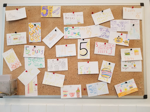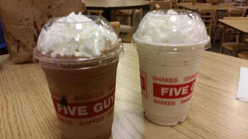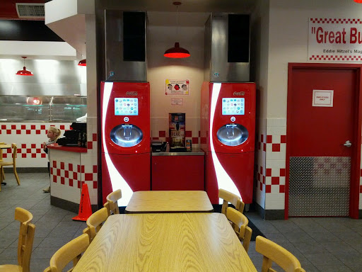 We love Five Guys because their service is fast while the outcome is still fresh. They have those great Coke-a-Cola machines that make any kind of flavor you can think up.