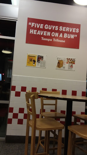 Same awesome quality and flavor you expect from Five Guys. And because its important, very clean and orderly bathrooms. Very well put together location.