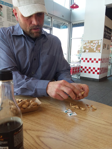 Our burgers and fries were great - exactly the same as every other Five Guys visit. They were ready fairly quickly and the staff was friendly. As for the location - we decided we prefer the Lancaster restaurant. The proximity of this location to Willamette Univ. meant that at the dinner hour, it was pretty full of students. Thats not a bad thing, really, but the seating was close to capacity and the noise level was loud.