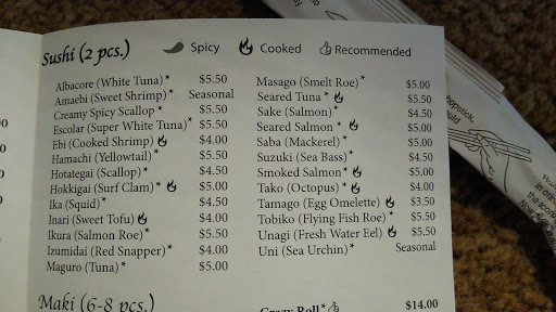 This place has good prices. The food is cooked very well every time Ive been here. They are doing it right for sure. Really good sushi, teriyaki, and sake! The coconut sake is delicious! They will let u call ahead for your meal to-go even though its a small place and have it ready pretty early sometimes. They have a sushi bar, regular tables, and cozy floor seats too! Im lucky I live close to this place! \(^o^)/