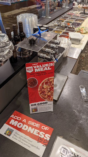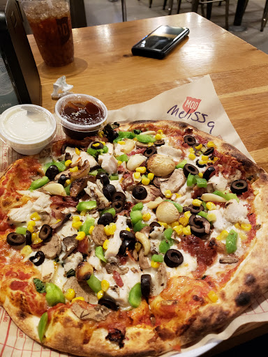 Pizza was good, though I dont believe my pizza was an actual Mod sized pizza. My wife ordered a Mod sized and it was twice as big as mine. I asked if it was the correct size after paying and the guy gave me a spiel about certain pizzas pressing differently but "its all the same sized dough". If I wanted a smaller size, I would have asked for one. The associate looked at my wife like she was stupid when she asked her if she heard that we both wanted a Mod size as she was making the pizzas. If you are going to have an attitude and dont want to work there then dont. Its not my first time at a Mod so I know how it works. My wife and I order the Mod sized pizza all of the time and one is never twice as big as the other.