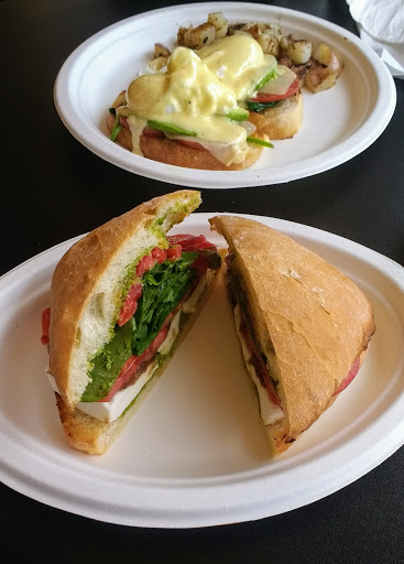 The eggs Benedict were delicious! I enjoyed them with the chorizo and chipotle hollandaise. A casual atmosphere, disposable dinnerware, sitting outside was pleasant.