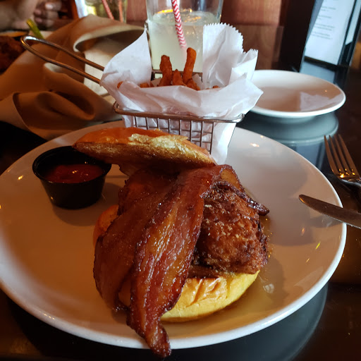 Ate here for the first which will also be my last. Burgers we ordered were overcooked and dried out. The waitress was good, the reason for not liking the service is because the venue does not split checks, and wont let you use more than two credit cards per bill. So, if you are dining as a couple this wouldnt be a problem, but we had 5 couples at one table. You can imagine the kind of bill 10 people can ring up (drinks, apps, and entrees). I probably wouldnt have minded so much if the venue had an ATM, so that 3 couples could get cash out, but no. This isnt the venue to do group dining. I wanted to like this place, its a shame.