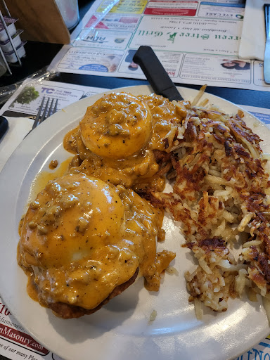 I have been to the Green Street Grill twice. Both times the service was excellent and food was prepared beautifully. My favorite item was the three egg omelette served with hash browns and toast. Both the omelette and hash browns were excellent! Portions are large for the price! The waiters are very kind and helpful! Ill definitely be back again.