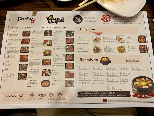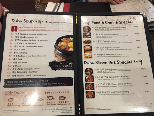 Pretty good soondubu (soft tofu). Decent spread of banchan (side dishes). Clean atmosphere. Nice decor. Iffy parking.