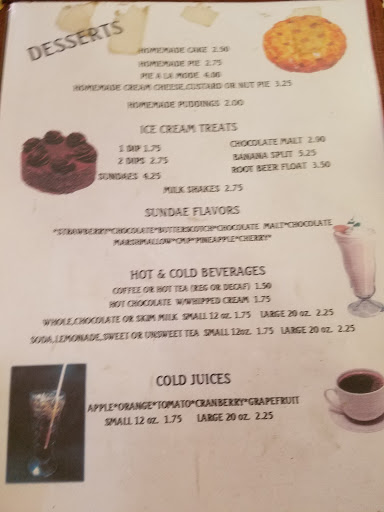 I love diners and Americana, but this place was just plain sad. To start, the "salad" was a small piece of iceburg lettuce with a big hunk of onion. Hamburger toppings. A bad omen, but I laughed it off. Nothing comes on a hamburger, and EVERYTHING costs an additional 50¢, so its not even cheap. I ordered a 6oz burger. It was throughly burned and dried to the point of being a hockey puck. It also had an off smell. It was an upsetting experience. My wife literally started crying. We abandoned the table, left our food and felt lucky to have escaped with only a $30 loss. I hope this review will be enough to save others. Unless youre an anthropologist and want to see how culture in rural Dutch Pennsylvania has withered, this place should be avoided at all costs.