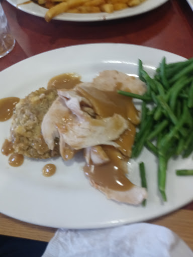Perhaps it was a off night when I visited this restaurant for dinner for the service was as palatable as the food. My friend ordered meatloaf, mashed potatoes & gravy, salad, and creamy fudge cake. I was more cautious ordering a small bowl of chili, onion rings, and a strawberry milkshake. My friends meatloaf and mashed potatoes were set aside after a few mouthfuls which lacked for flavor. His creamy fudge cake however both looked amd tasted great. My chili was okay but so Id ever reorder it, the onion rings as good as any fast food restaurant. I did not get my milkshake until my meal was finished and it had to be the wateriest milkshake Ive ever had. It seems as it was made but forgotten and I had to ask the waitress for it. The place is huge, lots of seating, clean, and has a pleasant ambiance.