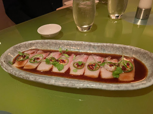 I went here to try a different take on Japanese cuisine, and may have walked in with higher than normal expectations given the name recognition. Its located right in Center City so I would recommend to plan for parking. I parked a few blocks south and walked to the restaurant. Otherwise, they do offer valet service for $15. The inside ambiance was very hip and trendy with low lighting, and modern aesthetics. The seating seems purposely done to be closer to the ground as is typical for traditional Japanese meals. We sat in the upstairs room which was more secluded and allows for better conversation. I started with the mixed baby greens as my appetizer. It was served with a yuzu vinaigrette. I thought the dressing overpowered any freshness from the greens. I found the dressing to be quite tangy, and I didnt end up finishing the dish since each bite was becoming more dressing and less greens. In hindsight, I shouldve asked for the vinaigrette on the side since I tend to not enjoy too much dressing on my salads to begin with. For my entree, I ordered their ramen bowl. This was pretty good! It was made in a vegetarian broth, with lots of veggies and noodles. I had asked for hot sauce, and it was served on the side for me to add in as necessary :). I thought the dish was hearty and I liked that I could spice it up with the hot sauce at my leisure. I dont think there was anything special about this ramen bowl versus others Ive had at different places, but still a decent option. For dessert, I got the mango pudding! You can definitely taste the mango, which I liked. The presentation was in a popsicle form and I think it works nicely on how its meant to be eaten. There is a creamy center and the outside edge is more tough - allowing you to mix the hard and soft in one bite! The fruity notes and the fresh undertones are captured well in the dish - very enjoyable! Overall, I think this is a nice restaurant to try out, but no need to rush back anytime soon. I think you can probably find similar fare elsewhere at half the price.