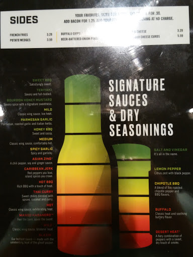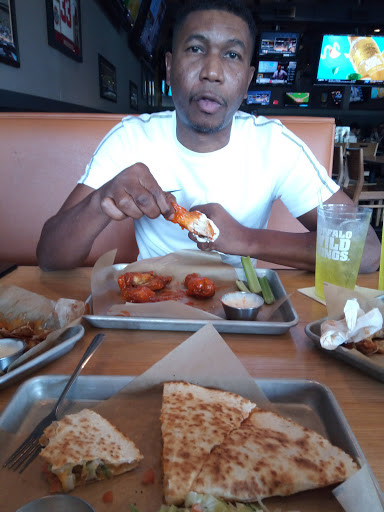 This is a typical Buffalo Wild Wings in that, if youre familiar with the menu, food here is good. Its standard bar/sports food. Of youre looking for gastro pub unique stuff, look elsewhere. People come here for the cheap beer and the walls of TVs. Me included. The staff is real friendly (the reason I come here is the bar staff) and theyll adjust which games are shown based on crowd majority requests. Clean and conveniently located.