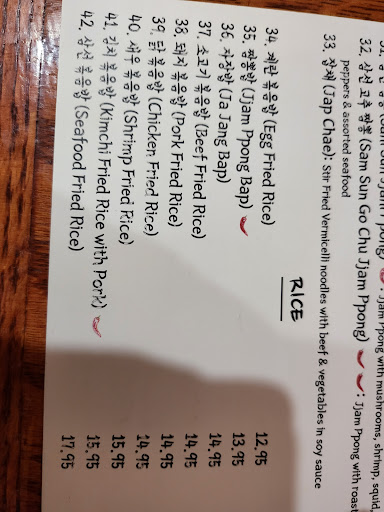 Got the Sahm Sun Jjam Bbong. Had it over a dozen times in Seoul and they did a fine job making it. Not quite as spicy as Id like, but Im being picky. Would return again.