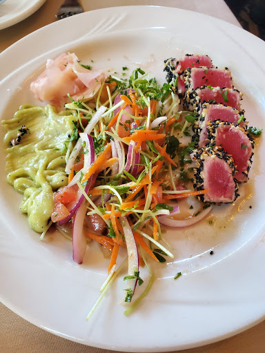 Finally had the chance to dine here on St Patricks day. I had a pomegranate martini which was great, not too sweet .There was a question about the menu, and the chef was kind enough to stop by our table. Decided to go with the blackened Salmon Florentine which was amazing.. The champagne vinegrette on the salad was the best Ive had. My husband enjoyed the French onion soup and the beef brisket. No dessert this time, but the Chocolate Pecan Tart is on my to do list:) Our server was attentive and fun. Lorenzo was the musician for the evening...a big plus! Will definitely be returning soon.