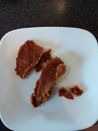 Old dried up chicken tenders. I purchased these, intending to send them to school with my daughter for lunch. They look as if they sat under the heat lamp all day, and then were packaged at the end of the day.