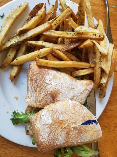 I had eaten here a while ago and liked it well enough, but after two recent mediocre meals here I am hesitant to recommend the sit down menu. The first time, a brunch, they were out of waffle batter and the texture of the scrambled eggs was odd. The sandwiches my friends ordered were good and the fries were delicious. The second time we went for dinner. The dining room smelled of burnt food and the 3 dishes ordered were all edible but nothing we felt compelled to finish. The to go coffee and bagels are fine but nothing that would sway me to stop here over other local shops.
