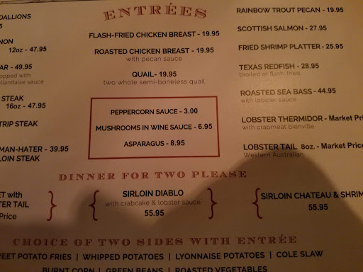 This is by far one of the worst steak houses I have ever been to in Dallas. I will never be coming back. First off the staff seemed scatter brained and had no idea where the food went or what was on the menu. We orders fried qual legs which had seasoning. The scallops were bland and over cooked. Lastly my steak, i ordered the house special steak. A 16 oz Delmonico steak medium rare. It was awful it was it was "cooked right" but tasted like a cheap piece of meat. It was chewy and and tough. I dont recommend ever coming here. Try silver fox down the road, it must be better.