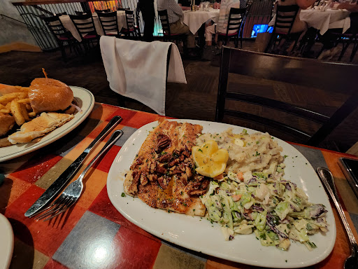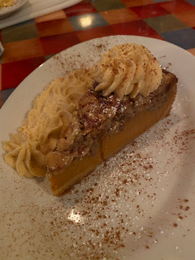 Food was good. The pecan pie is amazing I will definitely go back for that. A bit pricey, I wasnt a fan of the food. The bartenders were terrible, the owner had to pour our drinks. There were maybe 5 people behind the bar and no one would look at us or help us. With the price you are paying I think you should have better service than a chilis. It was so loud we could barely talk to each other. Meat was all fat and vegetables oily. The mashed potatoes were great though. I would only go back for the dessert.